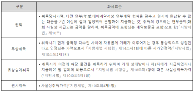 취득세는 아파트와 같은 주택, 토지, 차량 등을 취득할 때 납부해야 하는 세금입니다. 과세표준은 취득자가 신고한 취득 당시 가액을 기준으로 하며, 취득한 날로부터 60일(상속 시는 6개월) 이내 신고·납부하여야 합니다. 과세대상의 금액이 클수록 취득세에 대한 부담도 커집니다.