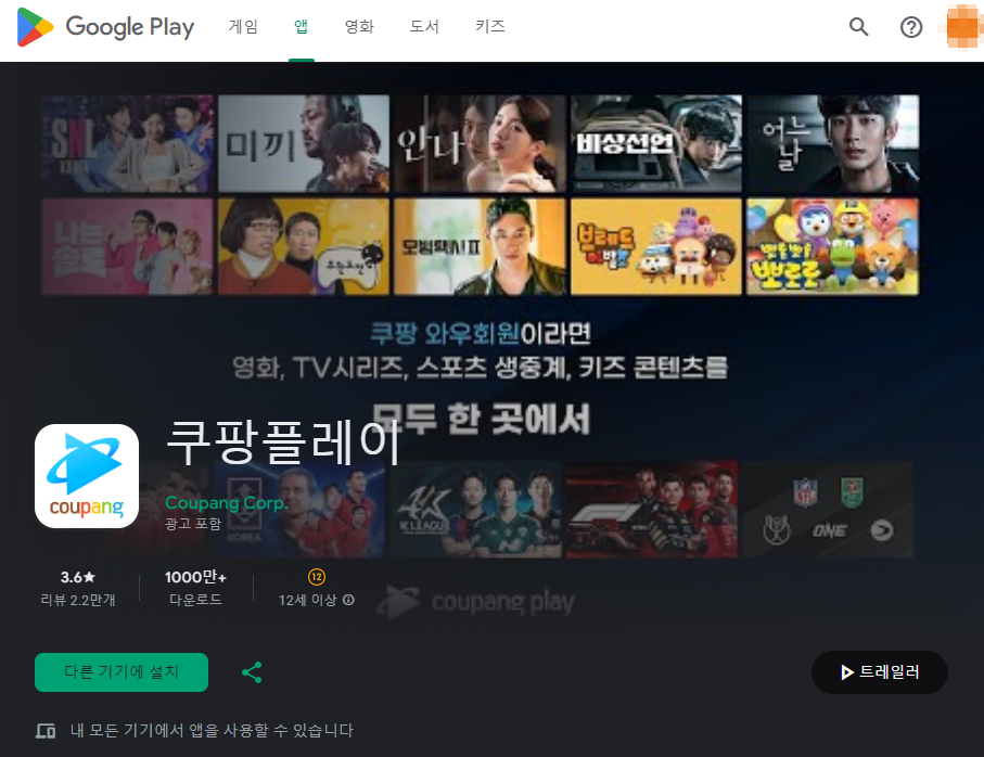 PC 화면 (쿠팡플레이)