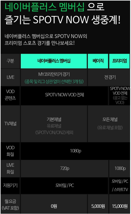 ▣ 네이버 플러스 멤버십 SPOTV NOW & SPOTV NOW 비교