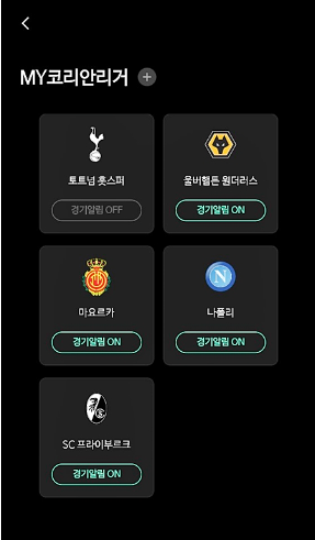 6. MY 코리안리거 설정이 완료되면 해당 팀의 경기가 있을 경우 알림 설정을 하셨으면, 알림을 받으실 수 있습니다.