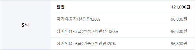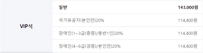 ※ 장애인 및 국가유공자 할인받은 티켓은 현장수령만 가능하며, 할인증빙서류(복지카드, 유공자증 등) 미지참시 할인받은 금액 현금지불 후 티켓수령 가능합니다.
