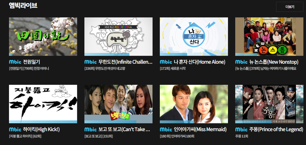 ▶ '엠빅라이브' 에서는 인기 있던 종영된 드라마, 예능, 시사 프로그램들을 다시 시청하실 수 있습니다.