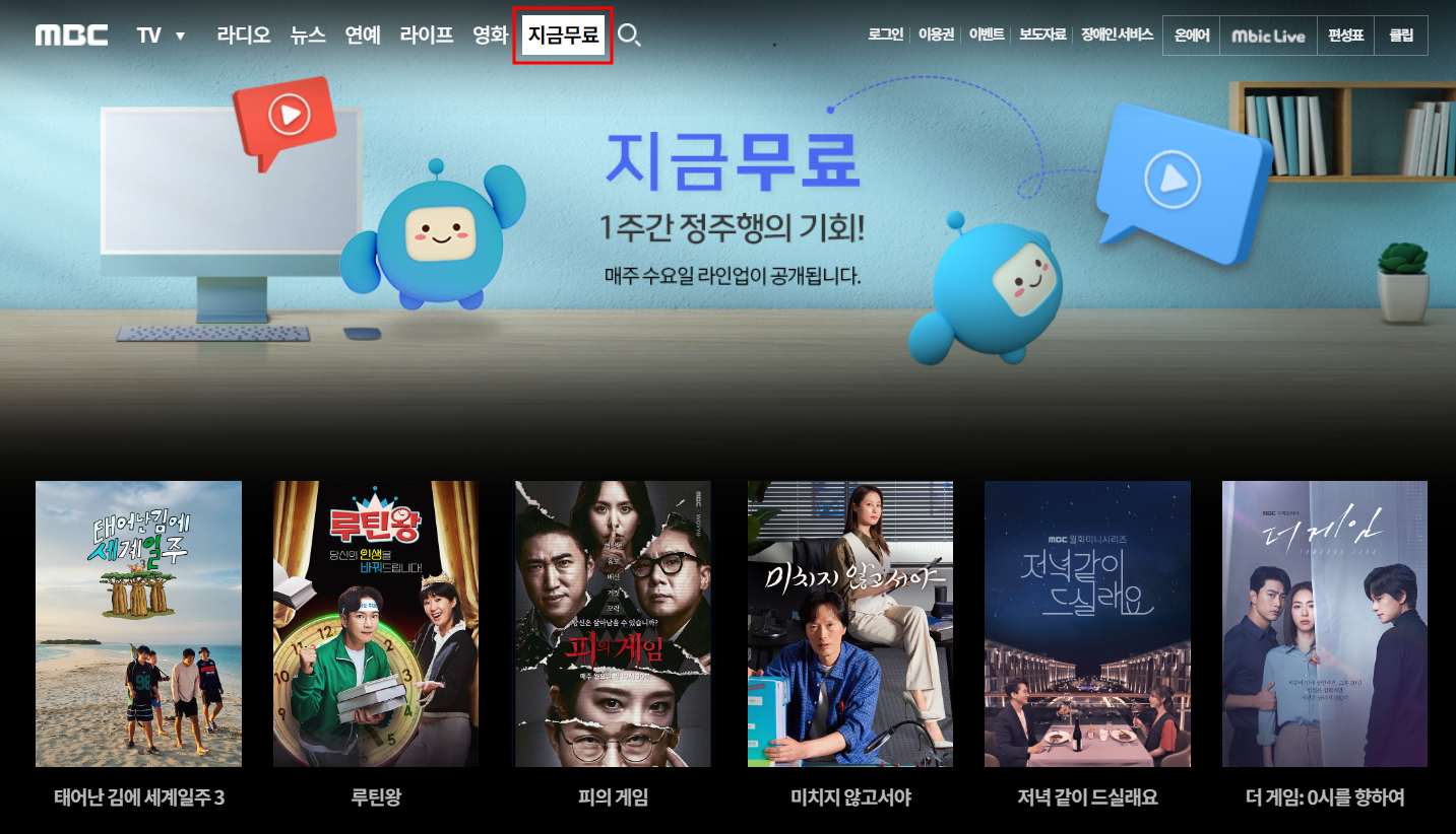 ▶ MBC 온에어에서 '지금무료'를 클릭하시면 바쁜 일상으로 노쳐버린 방송 프로그램들을 챙겨 보실 수 있습니다.