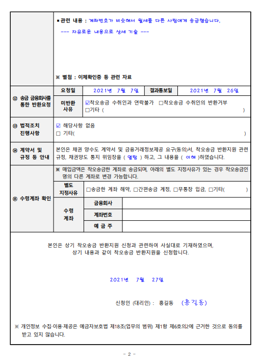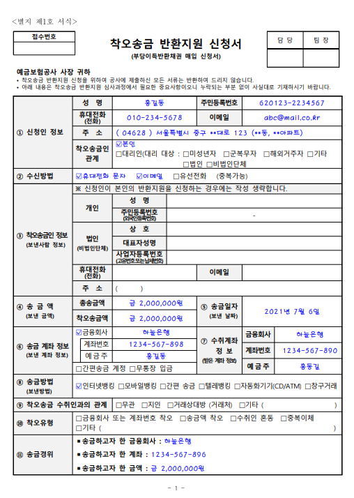 착오송금 반환 지원 신청시 필요한 서류들이 있습니다. 착오송금 반환 지원 서류를 아래에서 확인하셔서 착오송금 반환 신청 전 준비하시기 바랍니다.